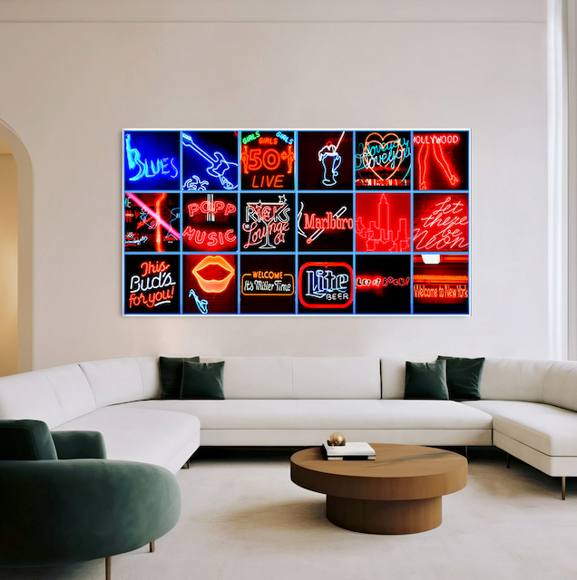 Plakative Neonreklamen in New York City aus den achtziger Jahren.